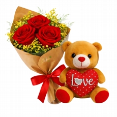 Trio de rosas vermelhas com Ursinho Love