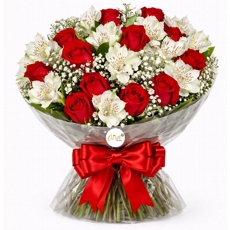 Luxuoso com 100 Rosas Vermelhas e Brancas