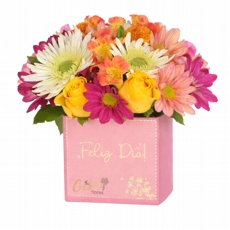 Buquê especial de rosas vermelhas e girassois em esponja floral