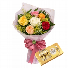 Combo Buquê 6 Rosas Vermelhas + Ferrero Rocher