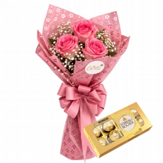 Bouquet Premium 12 Rosas Rosadas com Ferrero
