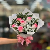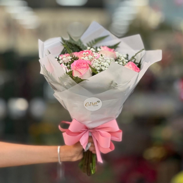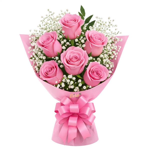 Gisa Flores: alegre e carinhoso, este buquê é composto por uma delicada seleção de rosas rosas, perfeito para alguém especial. Ideal para Felicitações ou como um gesto de carinho.