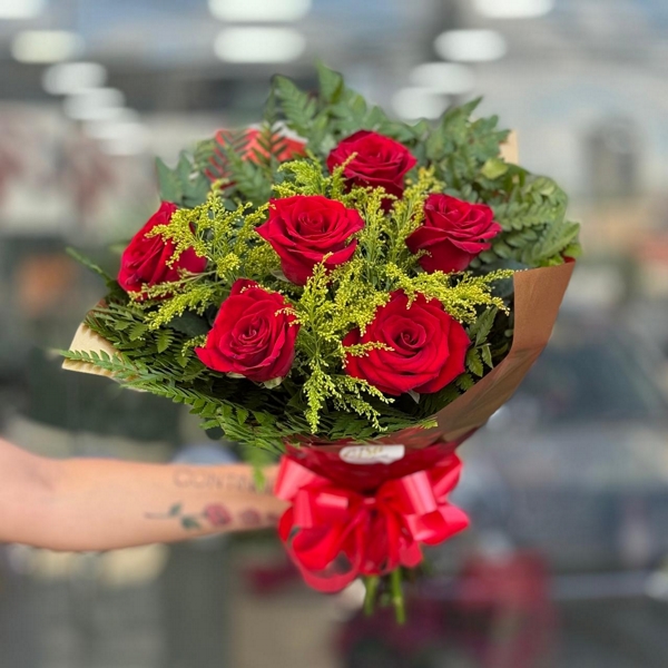 Com sua cor vibrante e apaixonada, este buquê é ideal para surpreender e encantar alguém especial em ocasiões românticas e significativas.
