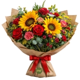 Mostre o quanto ela é especial com este lindo buquê, que une a alegria dos girassóis à intensidade das rosas vermelhas ou rosadas, criando uma composição romântica, vibrante e cheia de significado.