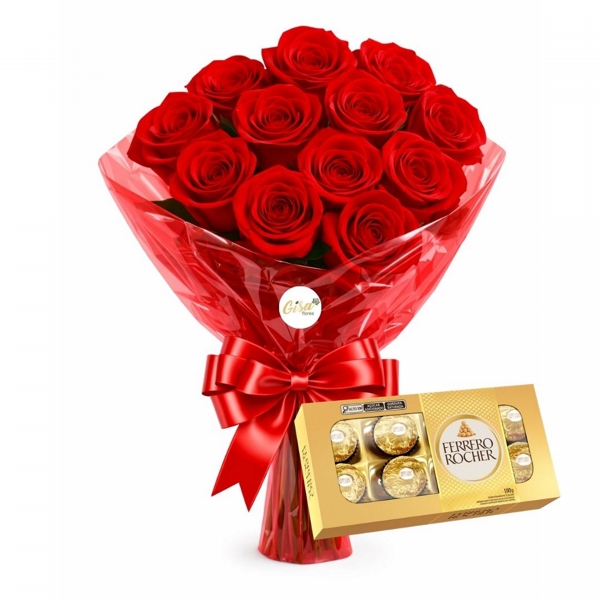 Encante com a intensidade e o romantismo deste buquê delicado composto por 10 rosas vermelhas, acompanhado do toque especial do chocolate Ferrero Rocher. Uma combinação perfeita para expressar amor, paixão e carinho de forma marcante e inesquecível.