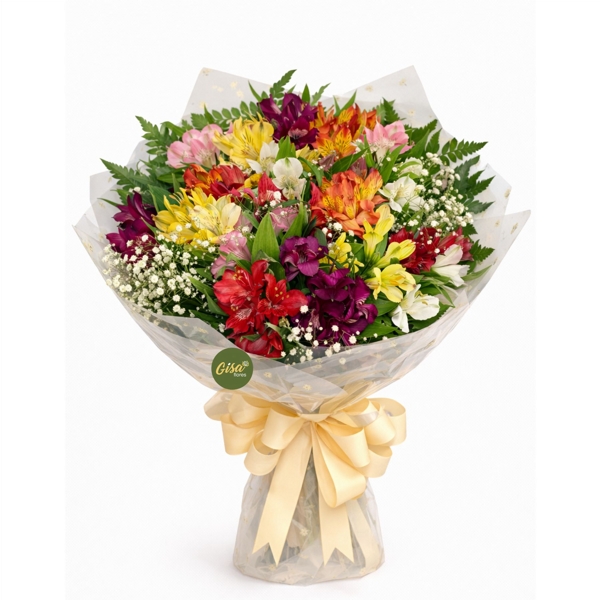 Observação: O grau de abertura das astromélias pode variar de acordo com a disponibilidade de estoque e fatores naturais inerentes à própria flor, não sendo possível o controle direto pela Gisa Flores. Astromélias mais fechadas indicam que estão frescas e em fase inicial de desenvolvimento, abrindo-se naturalmente ao longo dos dias.