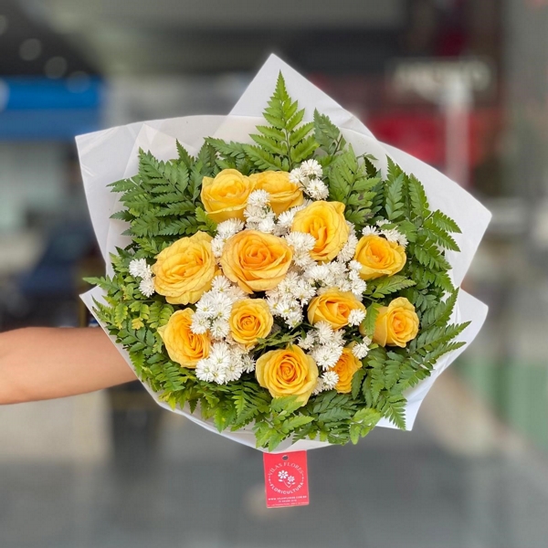 Gisa Flores: radiante e vibrante, este buquê de 12 Rosas Amarelas simboliza amizade, alegria e bons momentos. Ideal para presentear em ocasiões de celebração e para iluminar o dia de alguém especial.