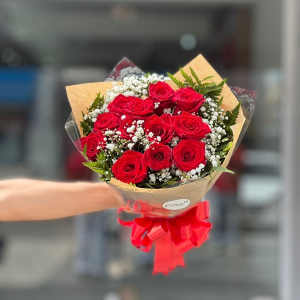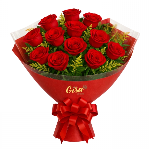 Este lindo buquê de 12 rosas vermelhas é perfeito para expressar paixão e amor intenso.