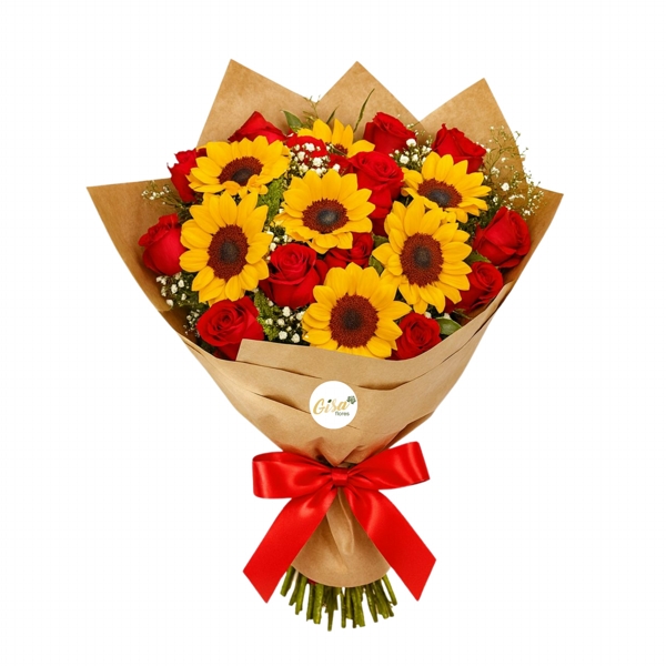 O Buquê Especial de Rosas com Girassóis combina a intensidade das rosas vermelhas com a energia vibrante dos girassóis, criando um arranjo marcante e cheio de vida. Este buquê é perfeito para ocasiões especiais em que o amor e a alegria precisam ser celebrados com estilo.