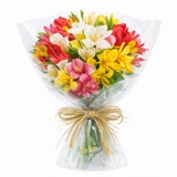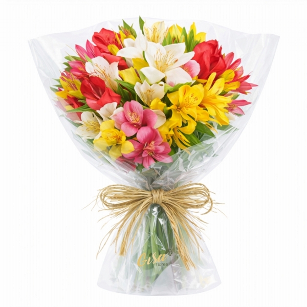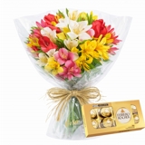 Surpreenda com um presente alegre e irresistível. O buquê de alstroemélias coloridas traz leveza e boas energias, acompanhado de 8 bombons Ferrero Rocher, criando uma combinação perfeita de flores e chocolate para encantar em qualquer ocasião.