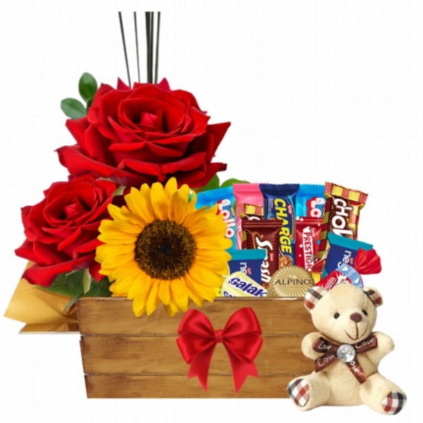 Surpreenda alguém especial com o Kit "Carinho Completo". Este presente combina o charme das flores, a doçura dos chocolates e o aconchego de um ursinho de pelúcia em uma caixa de madeira decorada com um laço delicado. Ideal para aniversários, datas comemorativas ou para expressar seu afeto em qualquer ocasião.