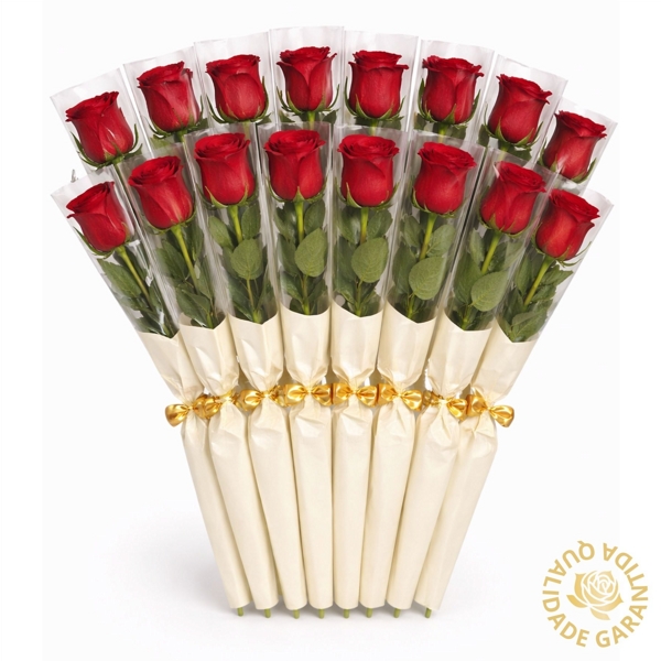 Conjunto com 20 rosas vermelhas, cuidadosamente selecionadas, simbolizando amor, respeito, admiração e reconhecimento.