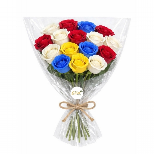 Conjunto com 21 rosas simples em tons de azul, branco, amarelo e vermelho, cores tradicionalmente associadas à celebração das águas, à fé, à proteção e à prosperidade. As flores são entregues juntas, em embalagem simples, sem amarrações ou ornamentações, respeitando a forma natural e simbólica de entrega.