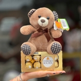 Um presente delicado e sofisticado. O kit traz um urso de pelúcia de 20cm, macio e charmoso, acompanhado de uma caixa com 8 chocolates Ferrero Rocher, reconhecidos por sua qualidade e sabor inconfundível. Ideal para surpreender em qualquer ocasião especial.