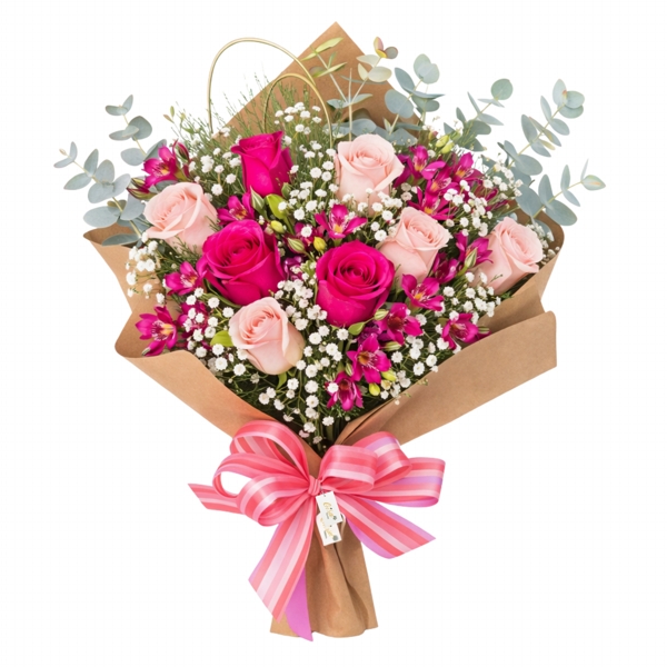 Um buquê harmonioso e cheio de significado, ideal para transmitir carinho, elegância e delicadeza. A combinação das rosas com as astromélias cria um arranjo equilibrado e sofisticado, unindo beleza clássica e leveza em uma composição encantadora, perfeita para presentear em diversas ocasiões.