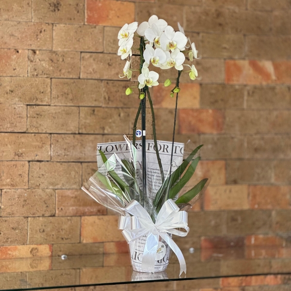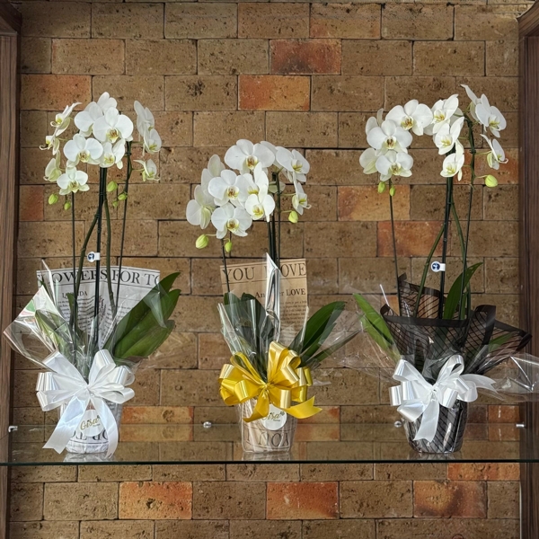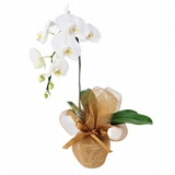 A Orquídea Phalaenopsis Branca é a personificação da elegância e do charme. Ideal para presentear em ocasiões especiais, como aniversários, celebrações ou para transmitir carinho. Seu design sofisticado, com delicados arranjos de flores brancas, vem adornado com um envoltório dourado, trazendo sofisticação e beleza incomparáveis.
